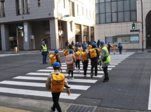 朱八→朱七→朱三→竹間学区の防災訓練を