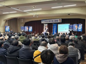今晩はひらたけ耕三候補の演説会を開催し、 私は司会を担当いたしました。 本当に寒い寒い日曜日の夜にもかかわらず ご参加いただいた大勢の皆様に加え、 会場設営、受付、後片付けとお手伝いいただいた 皆様には感謝しかありません!