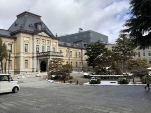 雪の残る府庁旧本館も素敵です。