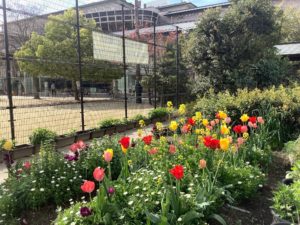 竹間公園の色とりどりのチューリップも